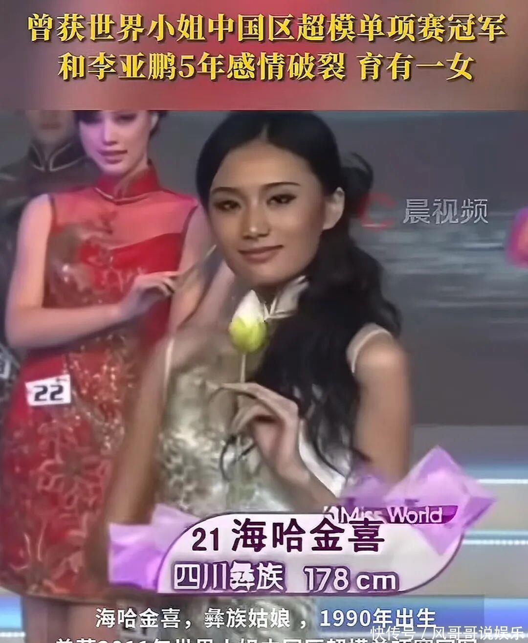 可能很多人还不知道李亚鹏第二任妻子是谁?还有很多人都不知道他再婚的消息。海哈金喜出生于四川省凉山彝族自治州,她从小喜欢唱歌。2005年,参加凉山彝族火把节选美比赛,被评为九大美女之一。2006年,获得世界旅游小姐大赛中国赛区总冠军和最佳上镜奖。2011年9月4日,获得第61届世界小姐中国区总决赛超模单项赛冠军。