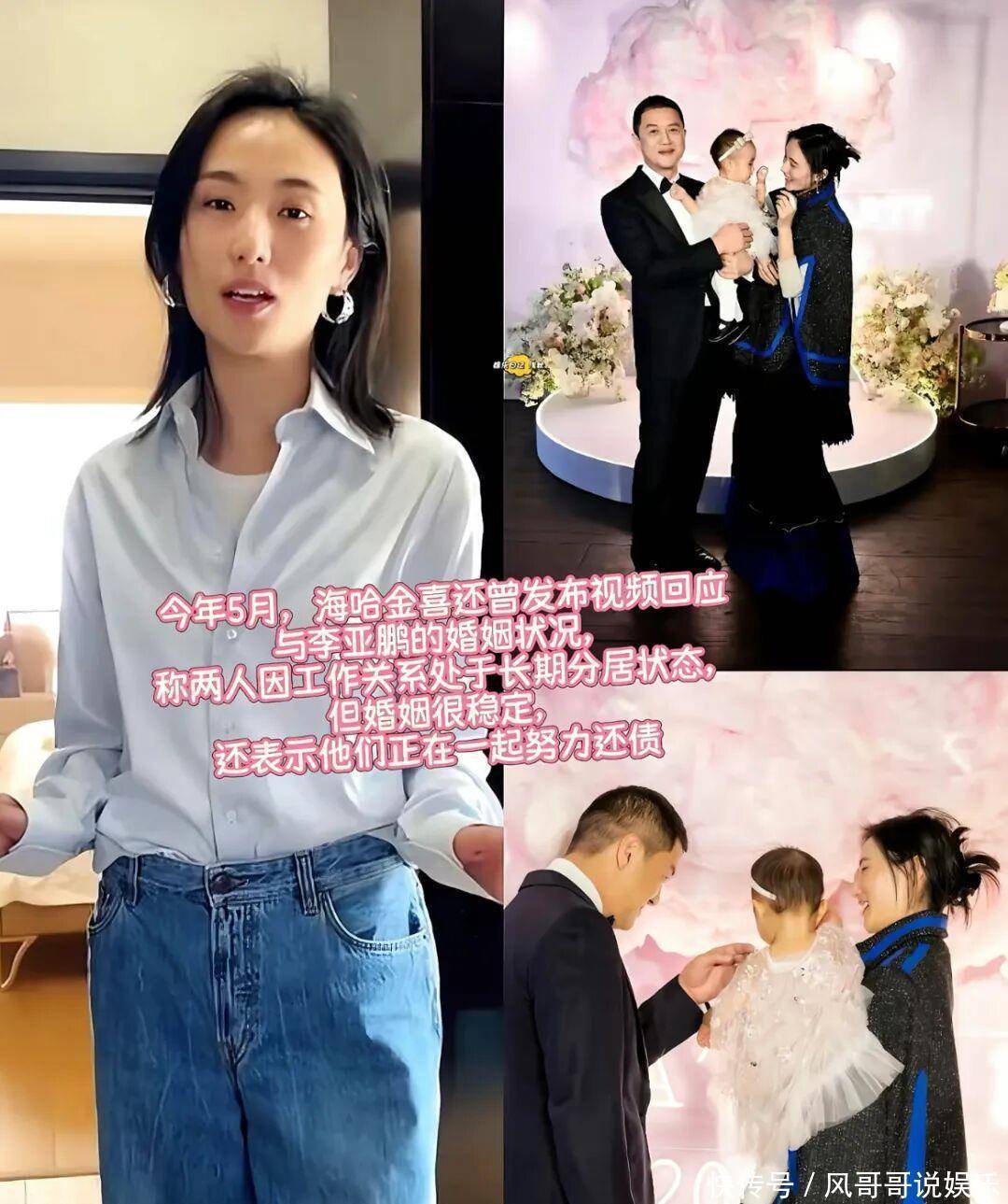 今年5月,海哈金喜曾发视频否认婚变,称分居是因李亚鹏在云南“找茶叶”,自己忙于工作室事务,强调“感情稳定”。然而10月14日,双方突然承认“早已办理手续”,间接证实五个月前的澄清存在延迟。